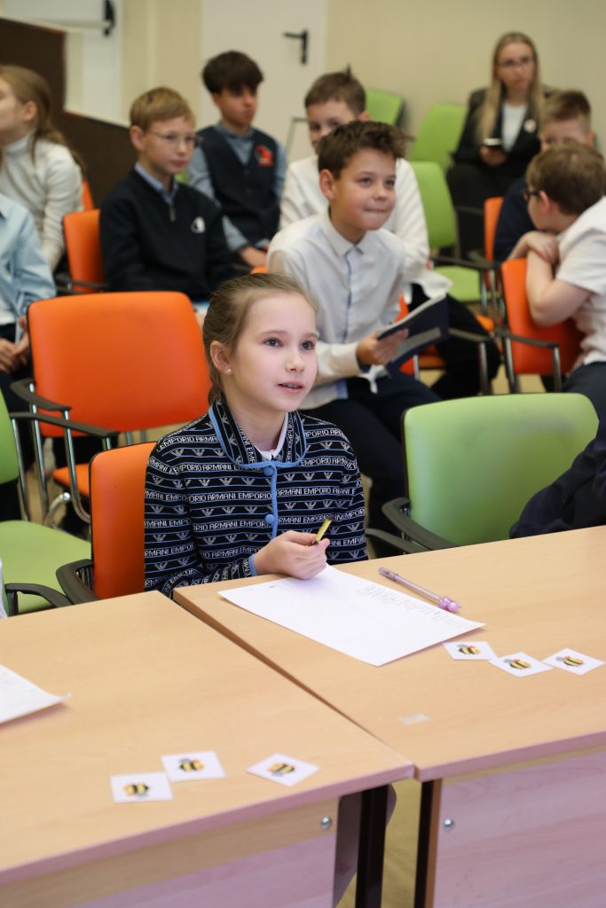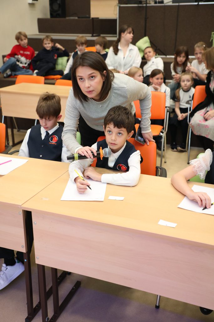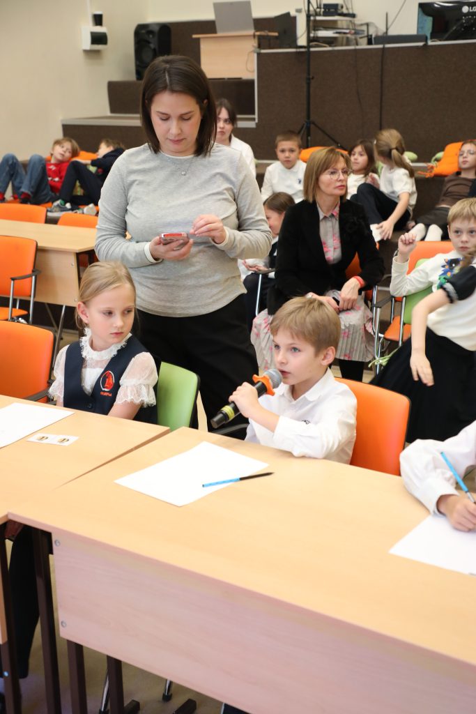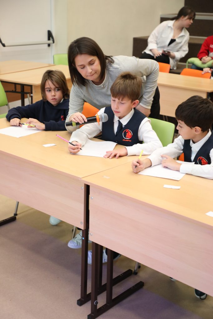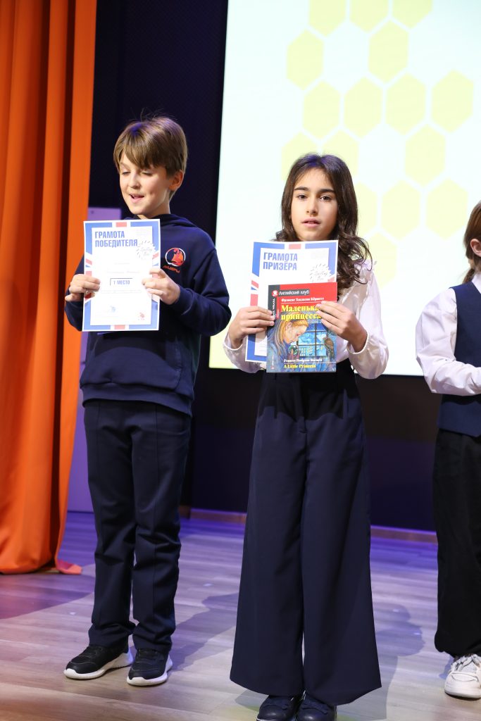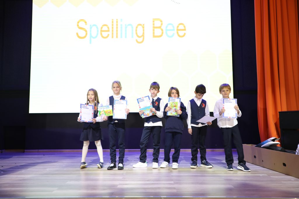 - Spelling Bee — напряженный конкурс произношения для 2–4 классов. Конкурсанты блистали, точно выговаривая сложные английские слова!