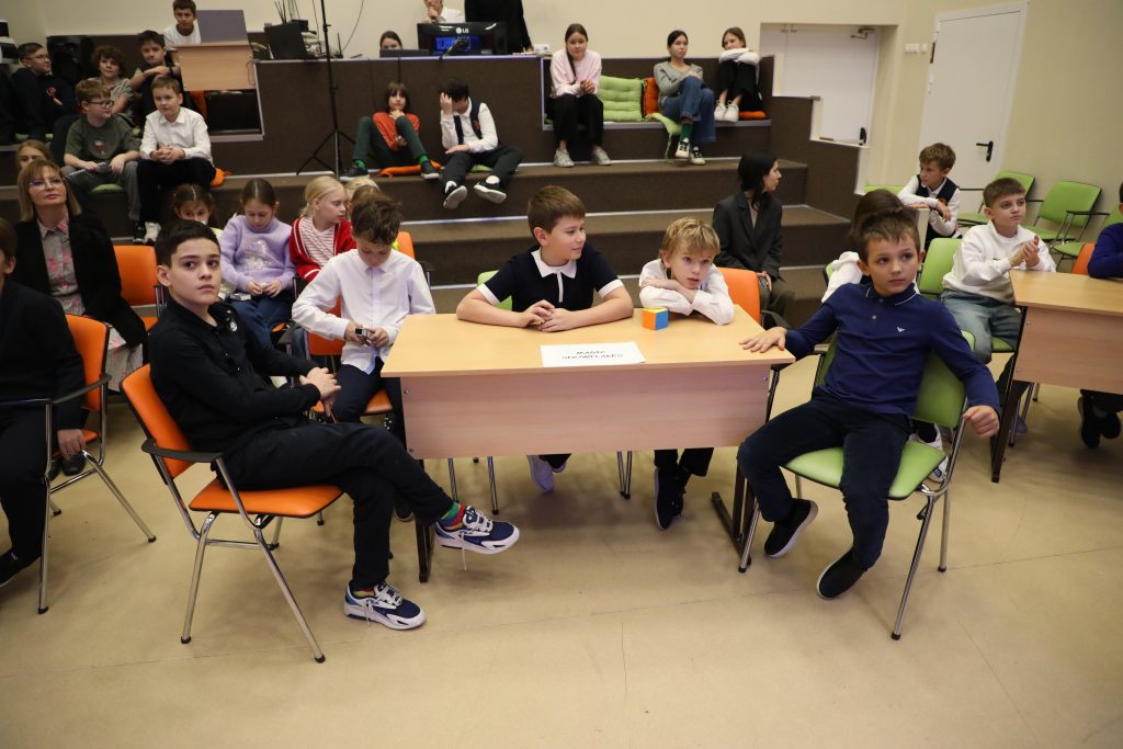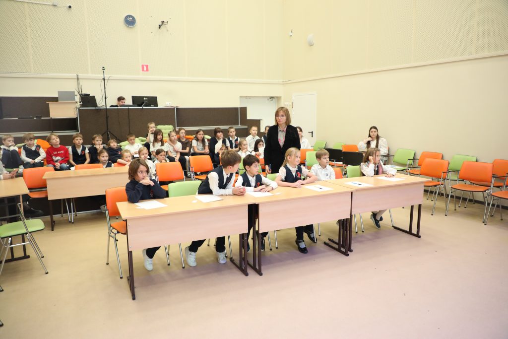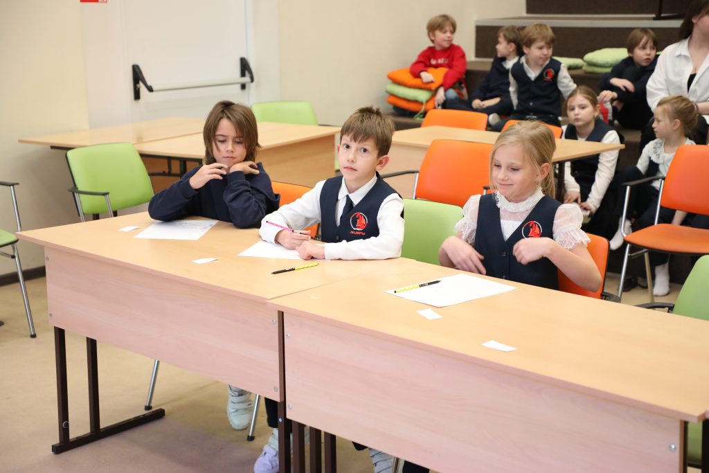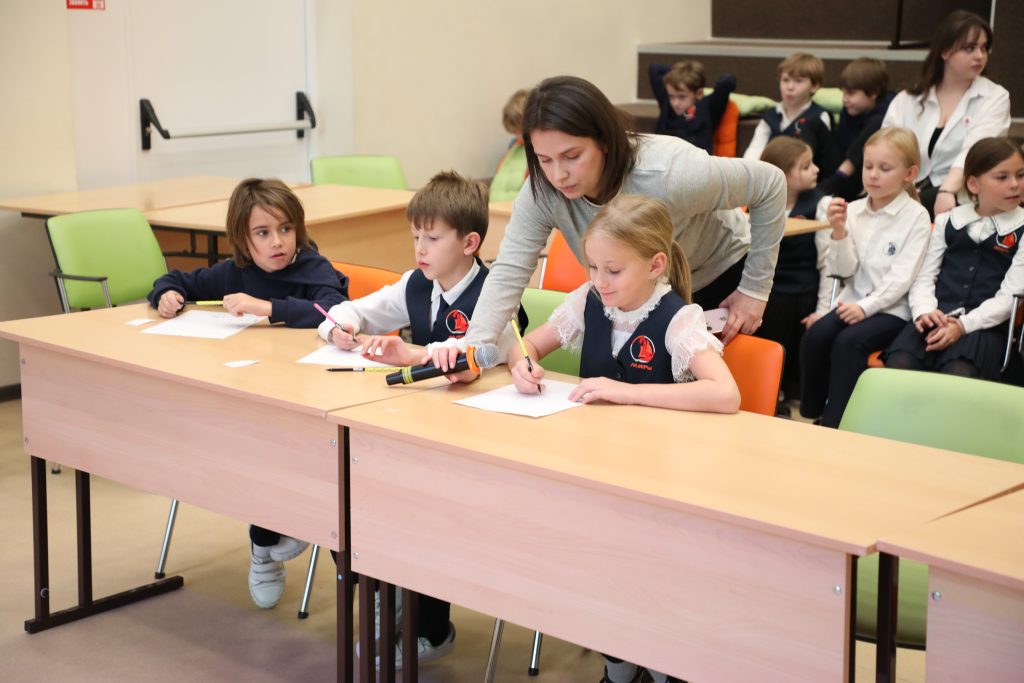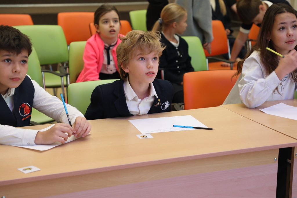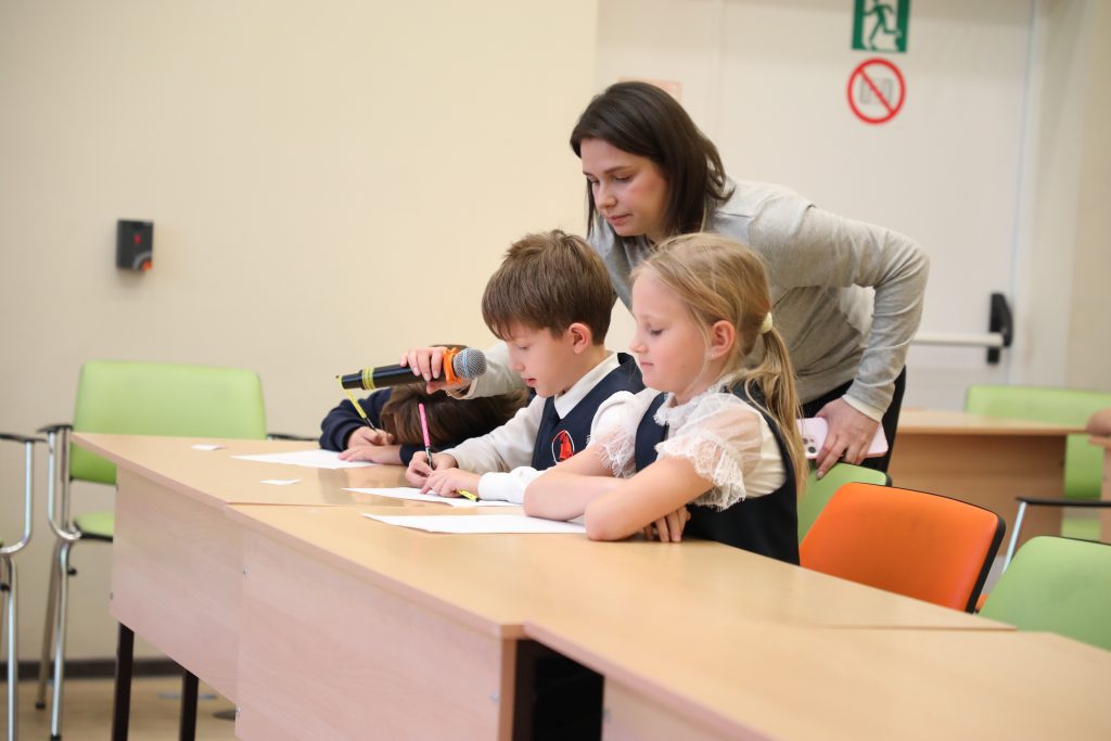 - Spelling Bee — напряженный конкурс произношения для 2–4 классов. Конкурсанты блистали, точно выговаривая сложные английские слова!